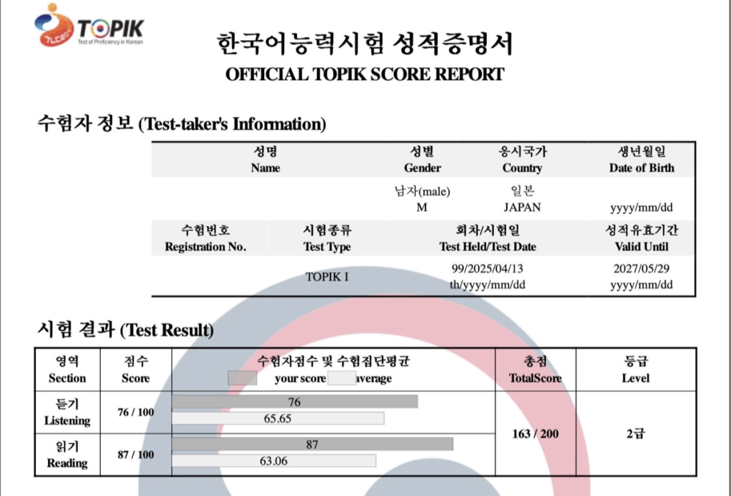 ご存知の通り、韓国語能力試験(Test of Proficiency in Korean)のこと。